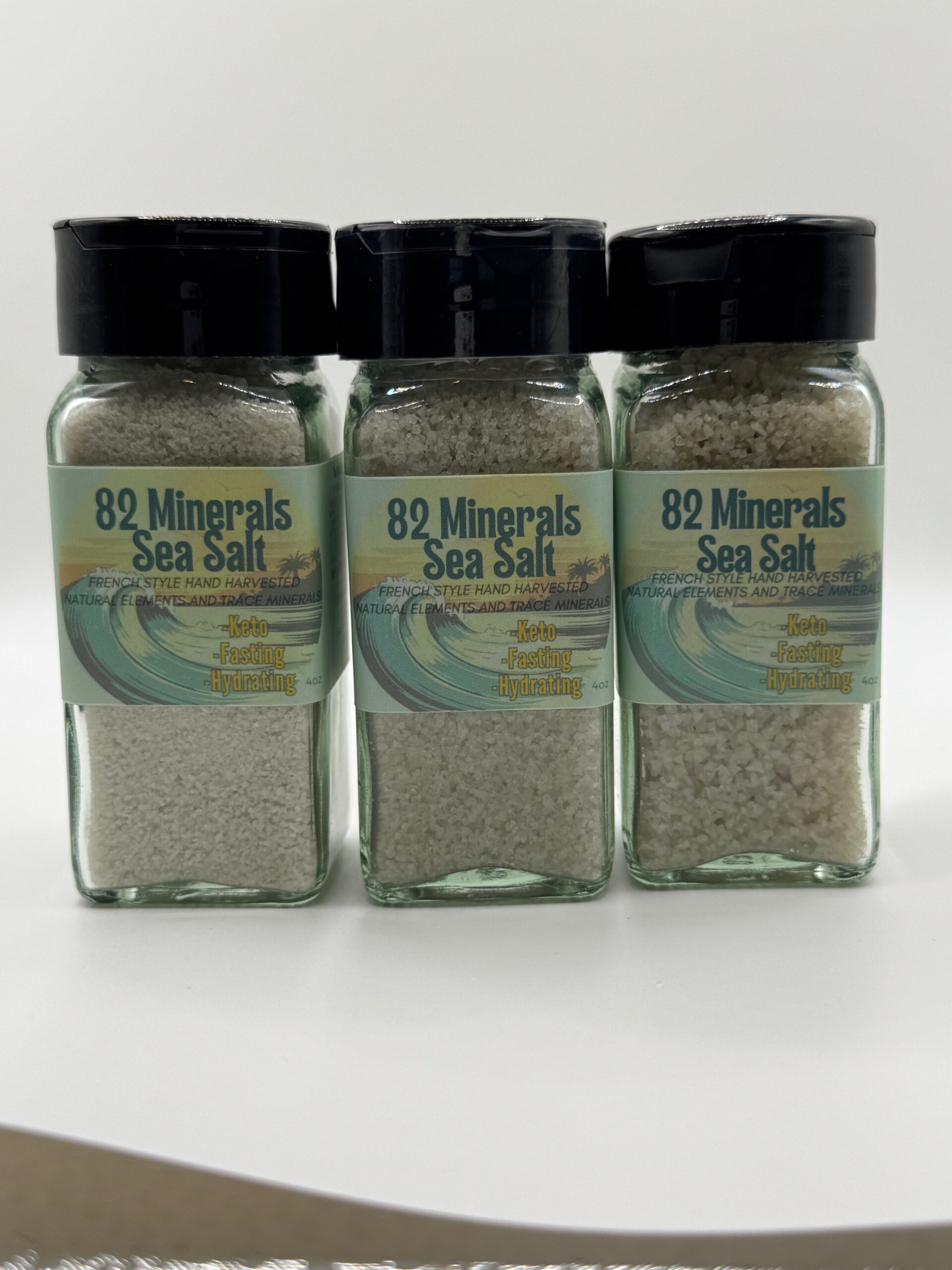 82 Minerals French Grey Sea Salt Shakers| Premium Hand-Harvested Sel Gris | 4oz Fine, Coarse, Extra Coarse Trio | Mineral & Electrolyte Finishing Salt